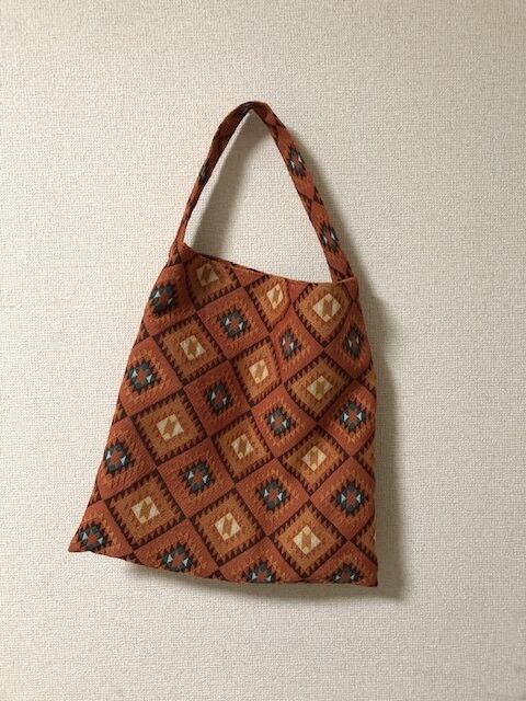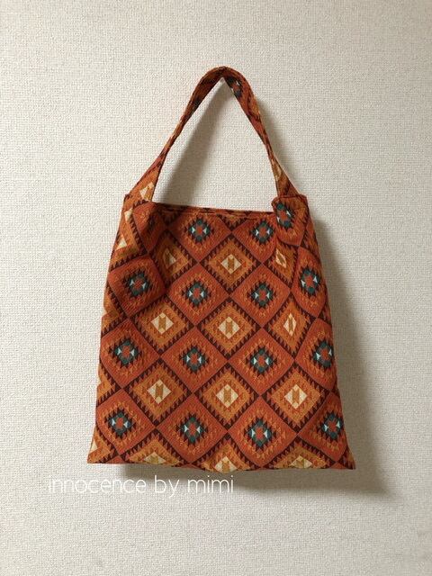 1つ1つ手作業で作成しましたオリジナルハンドメイドです。シンプルなお洋服に合わせてもアクセントになる色柄で、たっぷり入るトートバック。