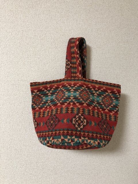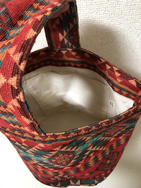 1つ1つ手作業で作成しましたオリジナルハンドメイドです。シンプルなお洋服に合わせてもアクセントになる色柄で、丸マチで中身も見やすく出し入れやすい、お出かけに便利なサイズになっております。